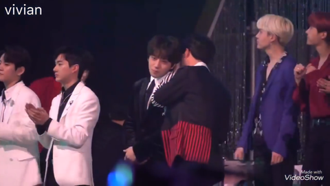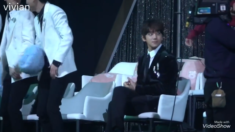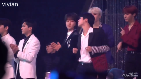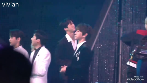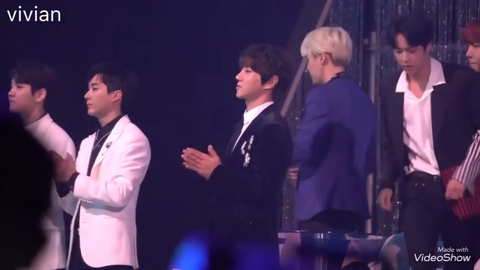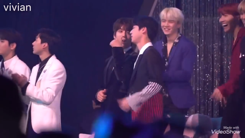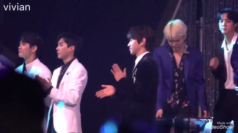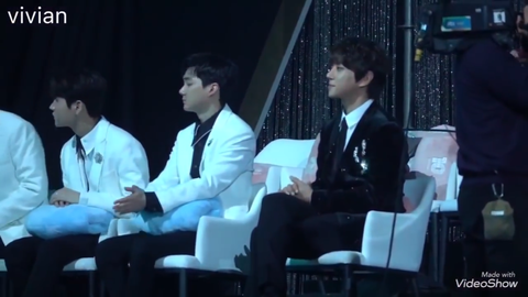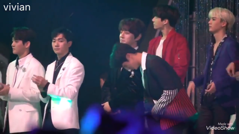 Because it was a upbeat stage, a few of them got up and Hwang Chiyeol started to look to his side
