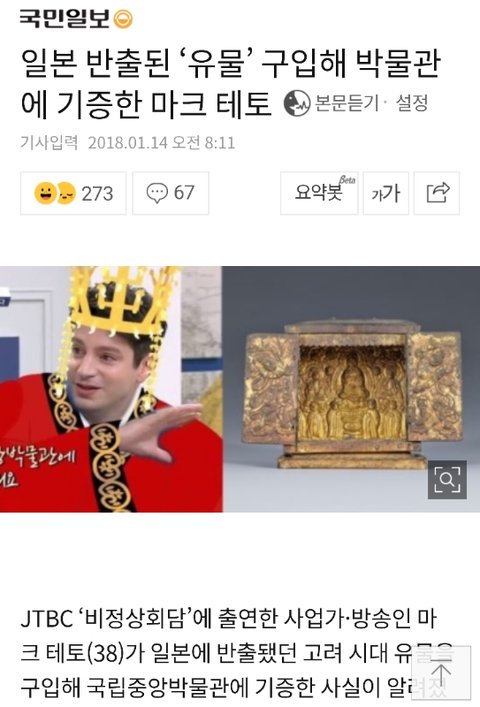 “JTBC ‘Abnormal Summit’ member Mark Tetto purchased a Goryeo relic that was exported to Japan back to Korea and donated it to the National Museum of Korea”’