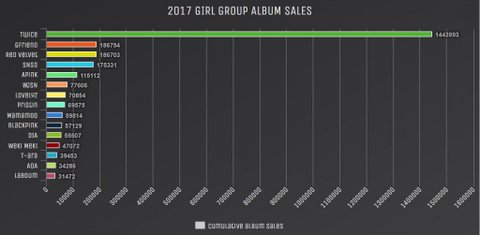 Twice's yearly sales > 14 girl groups sales added together