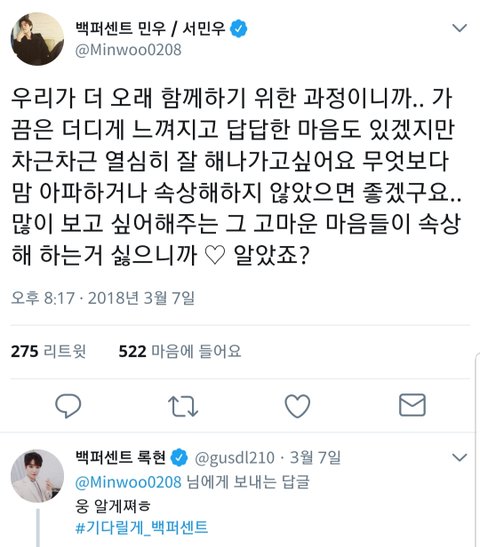 - "Since I want us to last long together.. I might feel like we're being too slow and I feel frustrated, but I want to do it orderly and work hard. More than anything else, I don't want you to get hurt and suffer... I'm very thankful and I miss you so don't get hurt <3 alright?"
