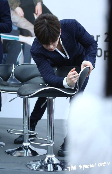 This is Wonho wiping the chair drenched in the rain