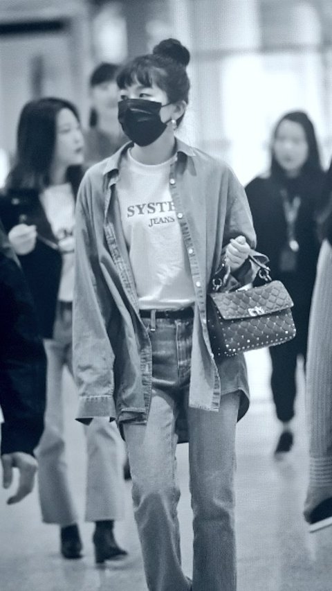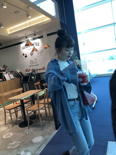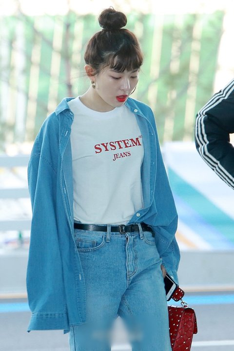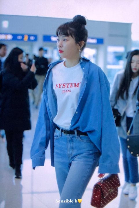 - Wow she's wearing jeans on jeans... can people even pull that off?.. as expected, the face completes the fashion. I'm a fan of another group but I find her so prettyㅠㅠㅠㅠㅠㅠㅠㅠ super likable