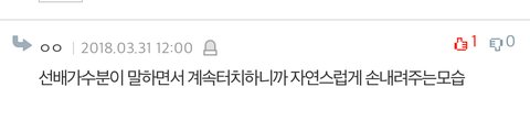 - "The sunbae singer kept touching her while speaking, so he smoothly removed his hand"