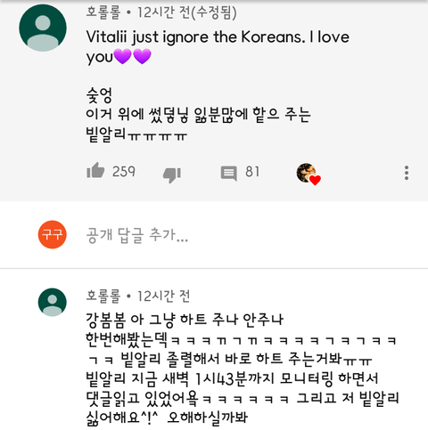 - "Vitalii just ignore the Koreans. I love you KOR: correction, what I just wrote up there was liked by Vitalii TT TT TT TT Vitalii was probably sleepy when he liked my comment TT TT Vitalii is still monitoring the comments and it's 1:43AM over there kekekeke By the way, I hate Vitalii ^!^ Maybe he misunderstood"