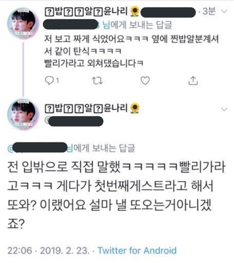 I said it directly like thatㅋㅋㅋㅋㅋㅋㅋ "Get out ASAP"ㅋㅋㅋㅋBeside I also said "you were already the first guest, you're coming again?" In case he was thinking of coming again tomorrow too?"