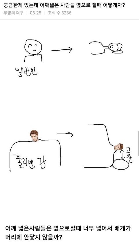 "I'm curious about something, how do people with wide shoulders sleep on their side?
