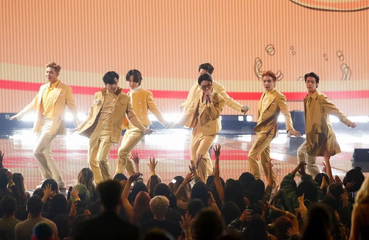 Members of @bts_bighit were greeted by loud "BTS" chants from fans as they arrived at the #AMAs. They're performing two songs at the show, including "My Universe" with @coldplay. pic.twitter.com/N2tcQMnBtS