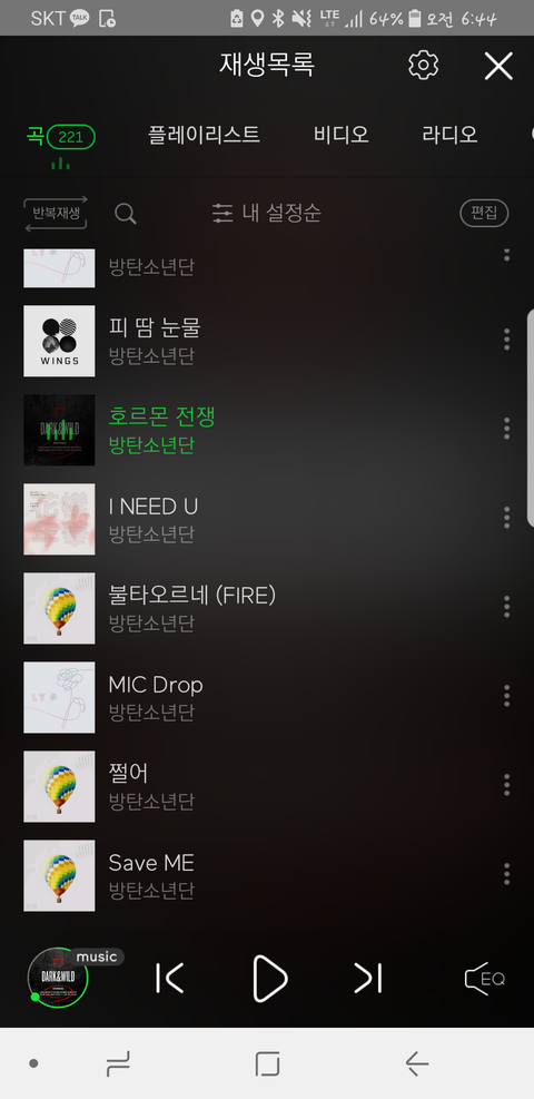 Spring day, I need u, Just one day, Mic drop, War of hormones... etc.