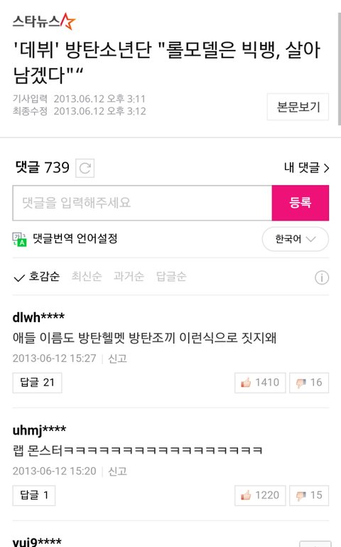"Omo... How did they decide on Bulletproof boys... If you cut it it would be Bangso ... That's not good at all;; They need to change their name... What about 1,2,3 Brave spirit?"