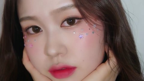 Her eyes are seriously so big and her nose is also so pretty. Her skin has no wrinkle or blemishes and her face shape is pretty… she has such a good face for wearing makeup.. ㅠㅠㅠㅠ