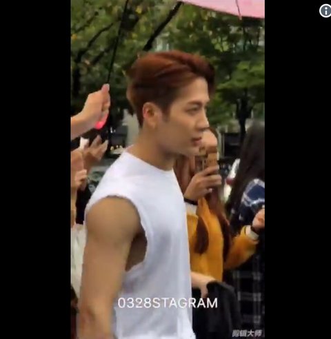 Today at Music Bank, one the fan was holding the umbrella for Jackson and one of the journalist (man) pushed the fan and she fell down, so Jackson said "you shouldn't be pushing a girl" with his serious tone, but despite this, the journalist pushed her again -> Jackson really got mad and went to the guy and said "You don't push a girl, understood? Jinyoung who was in front was also starring at the fan and got mad. It's my first time seeing Jackson this mad since he's always smiling