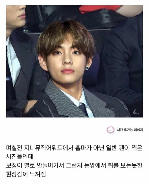 "Some days ago, a fan that's not a fansite master took a picture of V at the Genie Music Awards.